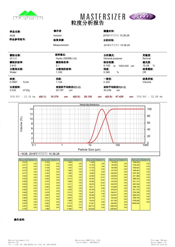 W28綠碳化硅微粉制造方法同黑色碳化硅,但采用的原材料純度要求較高,也在電阻爐中2200°C左右的高溫下形成,綠色,呈半透明狀,六方晶形,其Sic含量較黑色為高,物理性能與黑色碳化硅相近,但性能略較黑色為脆,也具有較好的導熱性與半導體特性.